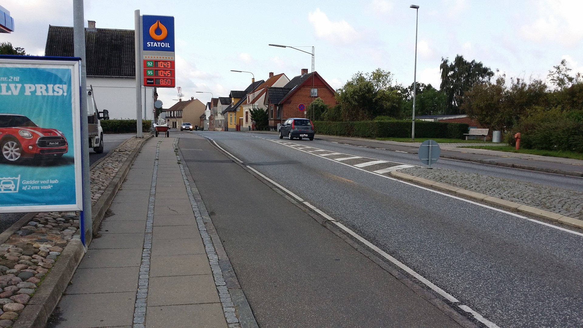 Der er to indkørsler til tanken: en direkte fra rundkørslen og et T-kryds syd for rundkørslen.