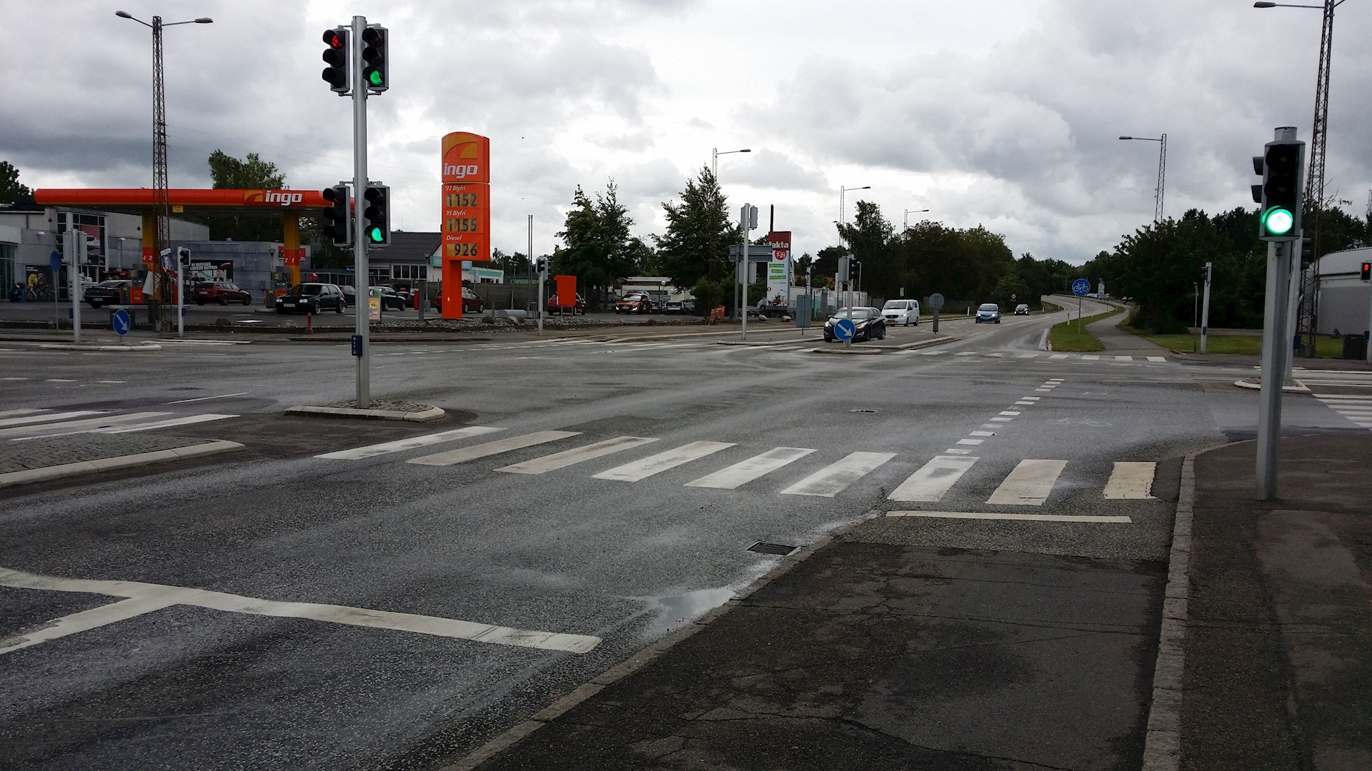 Lukning af den indkørsel til tanken, der er tættest på krydset.